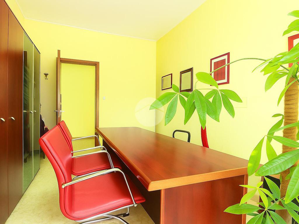 L'ingresso accoglie in un ambiente spazioso, da cui si accede a quattro stanze adibite a studio, perfette per attività professionali.