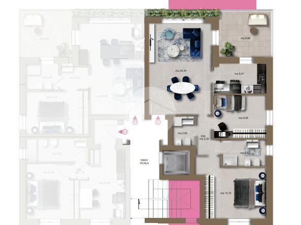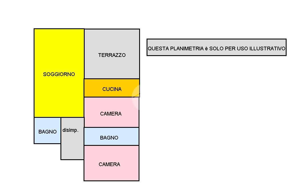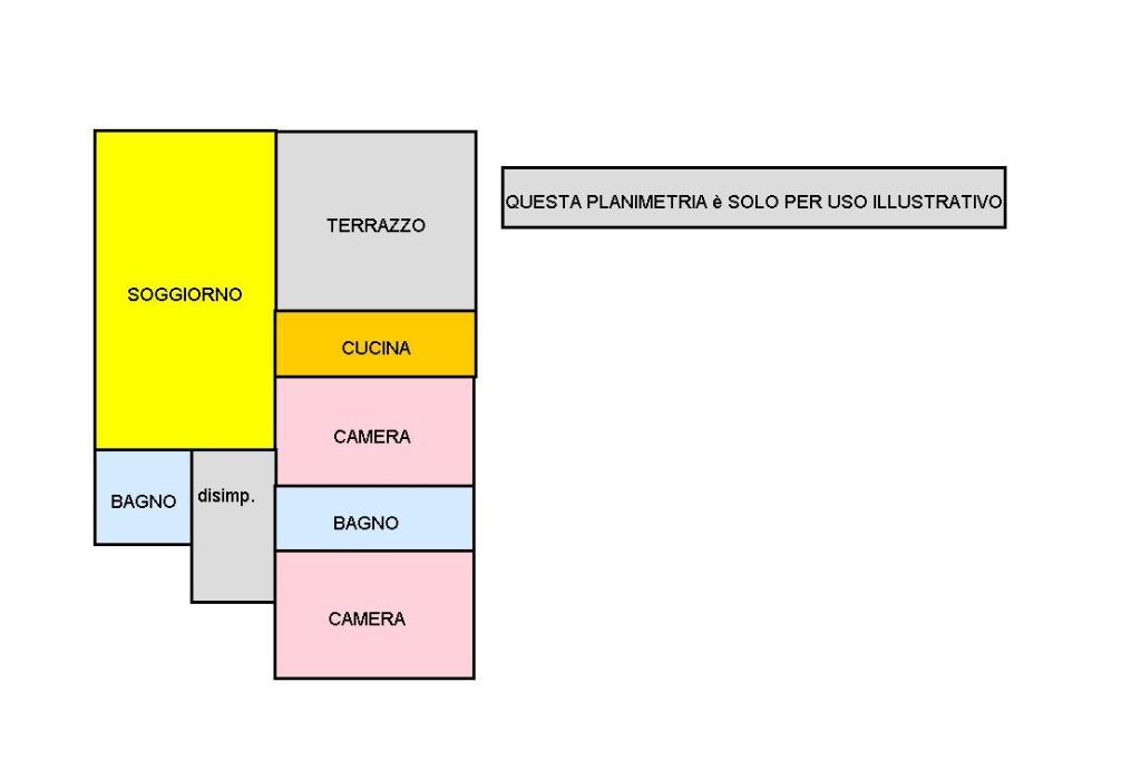 L'appartamento è composto da:soggiorno,cucina,camera matrimoniale,cameretta,due bagni e un comodo terrazzo nella zona giorno.