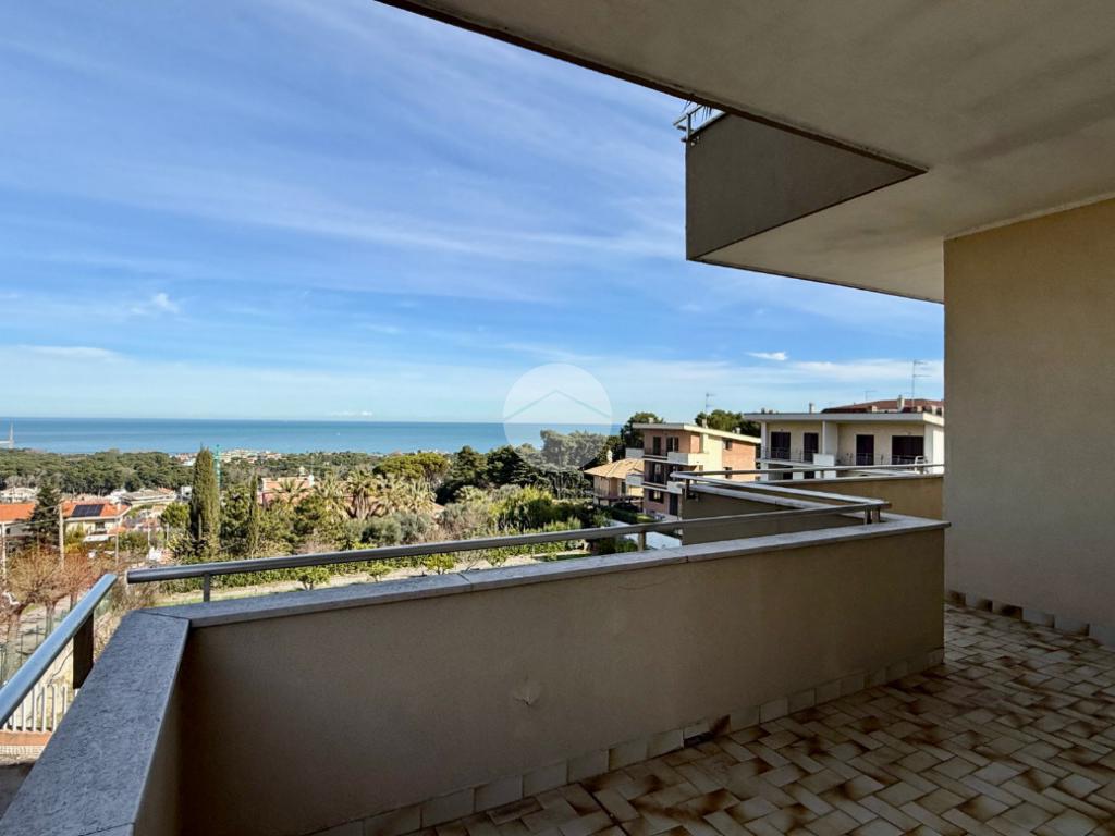 La soluzione è circondata da un bel balcone perimetrale con vista aperta sul mare e sulla pineta.
